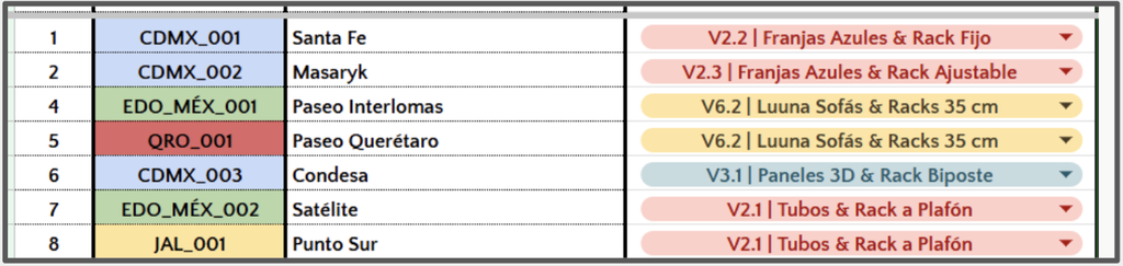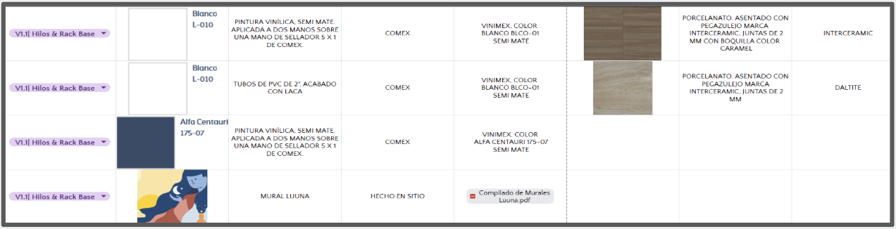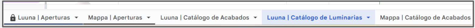 - De igual manera se encuentra el catálogo de Mappa de acabados y luminarias. En este archivo pueden consultar la marca y modelo de cada cosa para levantar los requisition requests.