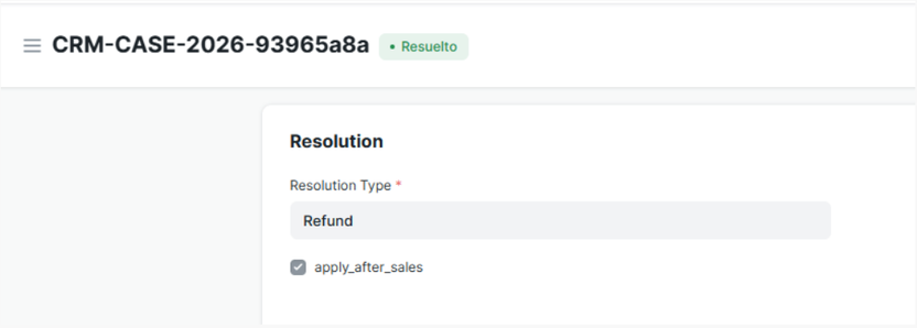 Resolution Refund: Aplica para iniciar el proceso de reembolso total o parcial. (Genera posventa).