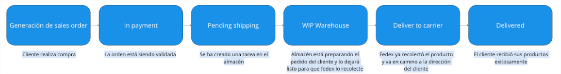 A continuación podrás entender cuál es el proceso que utiliza onfleet o fedex desde que se recibeg un pedido hasta que se entrega. Una vez conociendo qué significa cada estatus podrás entender qué está pasando en cada momento de la orden del cliente. Esto te facilitará para no preguntar sobre un seguimiento con customer service sino seas capaz de explicar qué está pasando con la orden y explicarle los siguientes pasos.