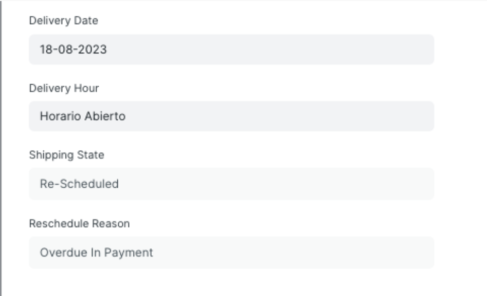 En caso de que la orden se encuentre reasignada por "Overdue in payment", se debe brindar la información a cliente que por cuestiones de una liberación tardía por parte del área pagos no se puedo enviar en la fecha estipulada. Se debe asignar a la fecha más próxima para su envío (Véase cambio de fecha).